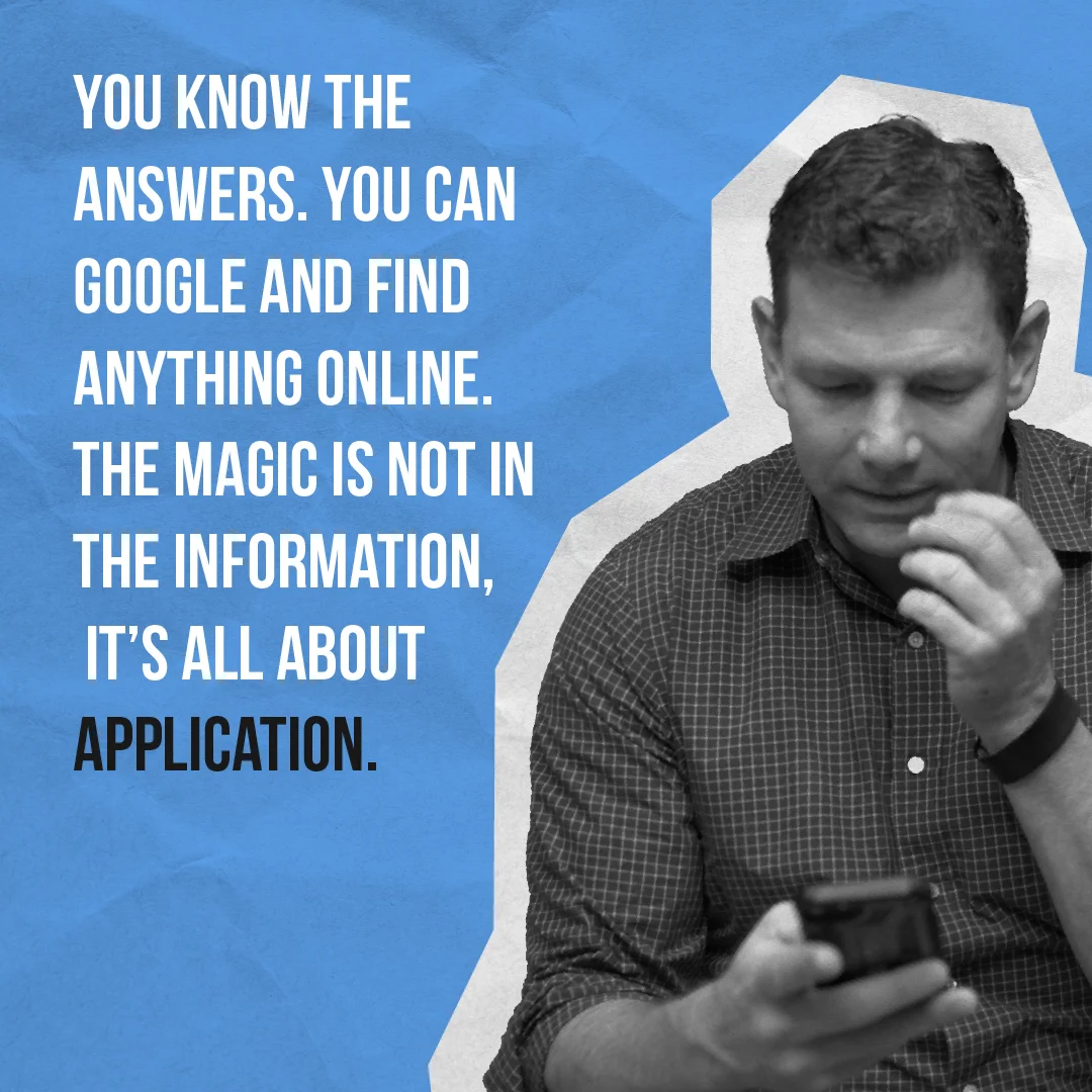 All this information is great. The motivation is great. The realizations are great. But without action and application, they didn’t give me results.